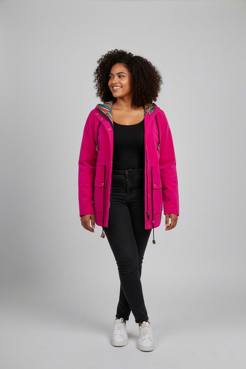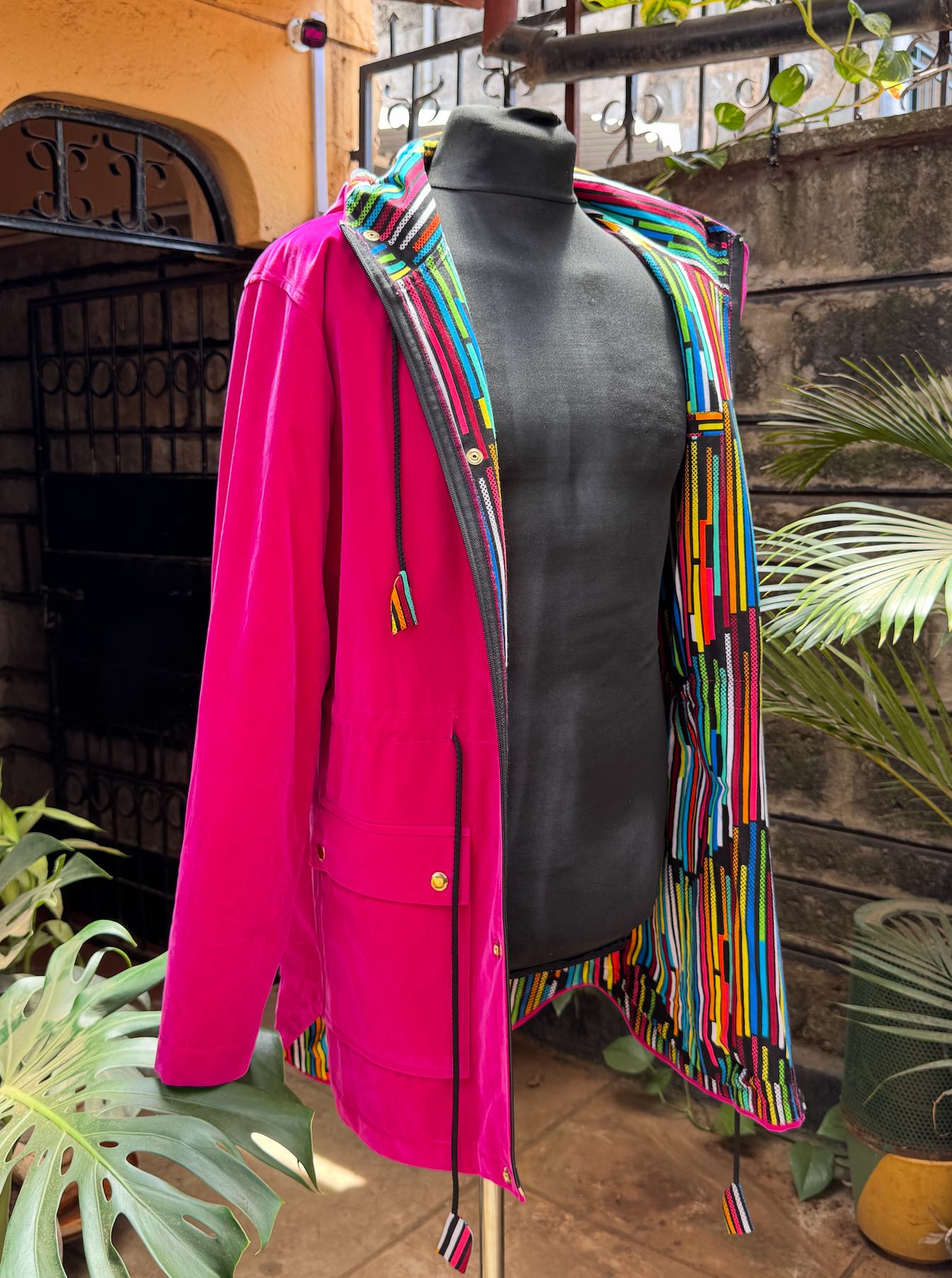 Pink Drop-tail Velvet Jacket with Ankara Lining